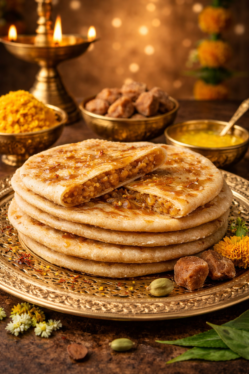 The Bobbattu / Puran Poli delivers a classic festive taste.