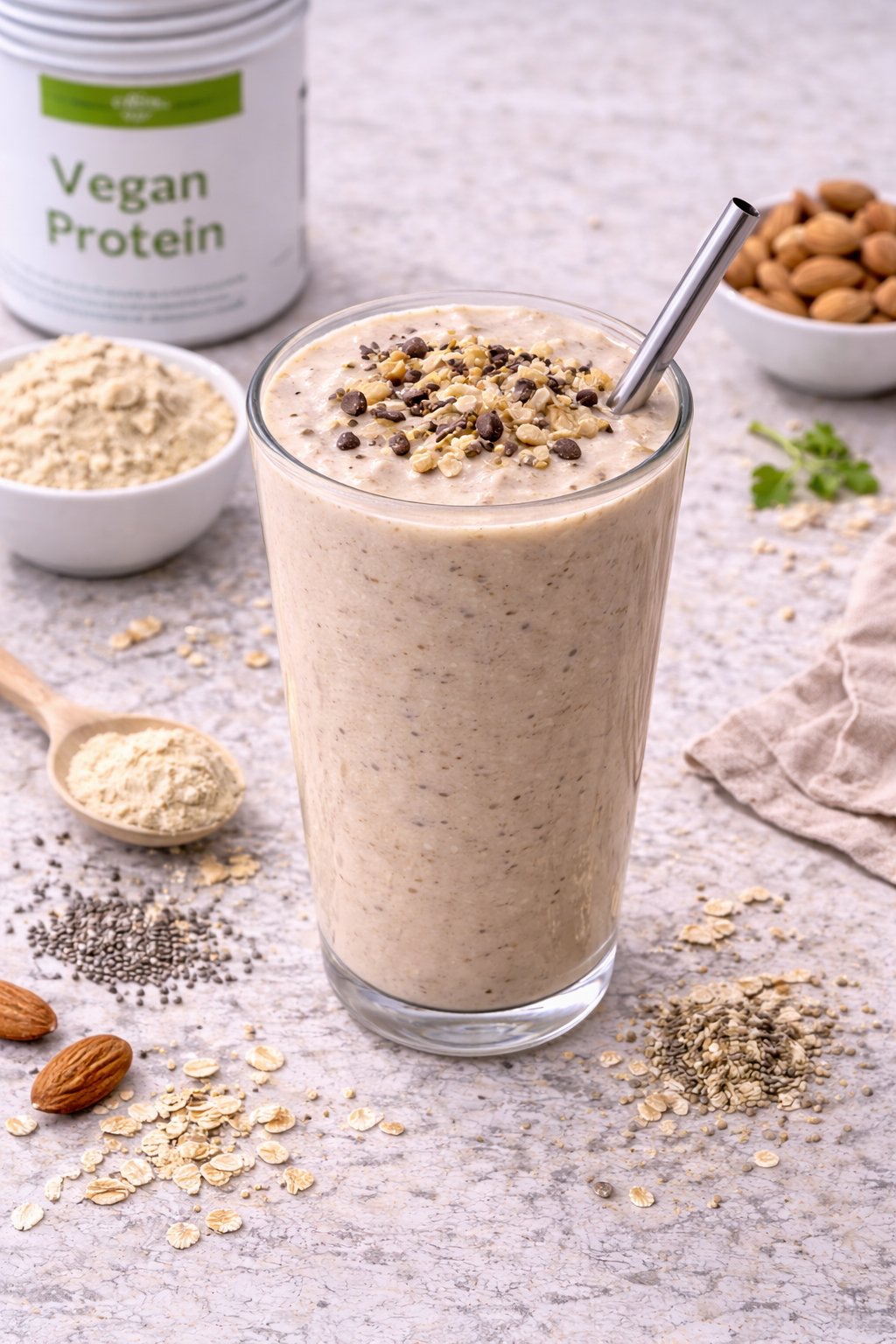Vegan Protein Shake is a healthy plant-based drink made with nutritious ingredients such as plant protein, oats, nuts, and seeds. This dairy-free shake provides natural energy and balanced nutrition, making it perfect for breakfast, workouts, or a healthy snack.